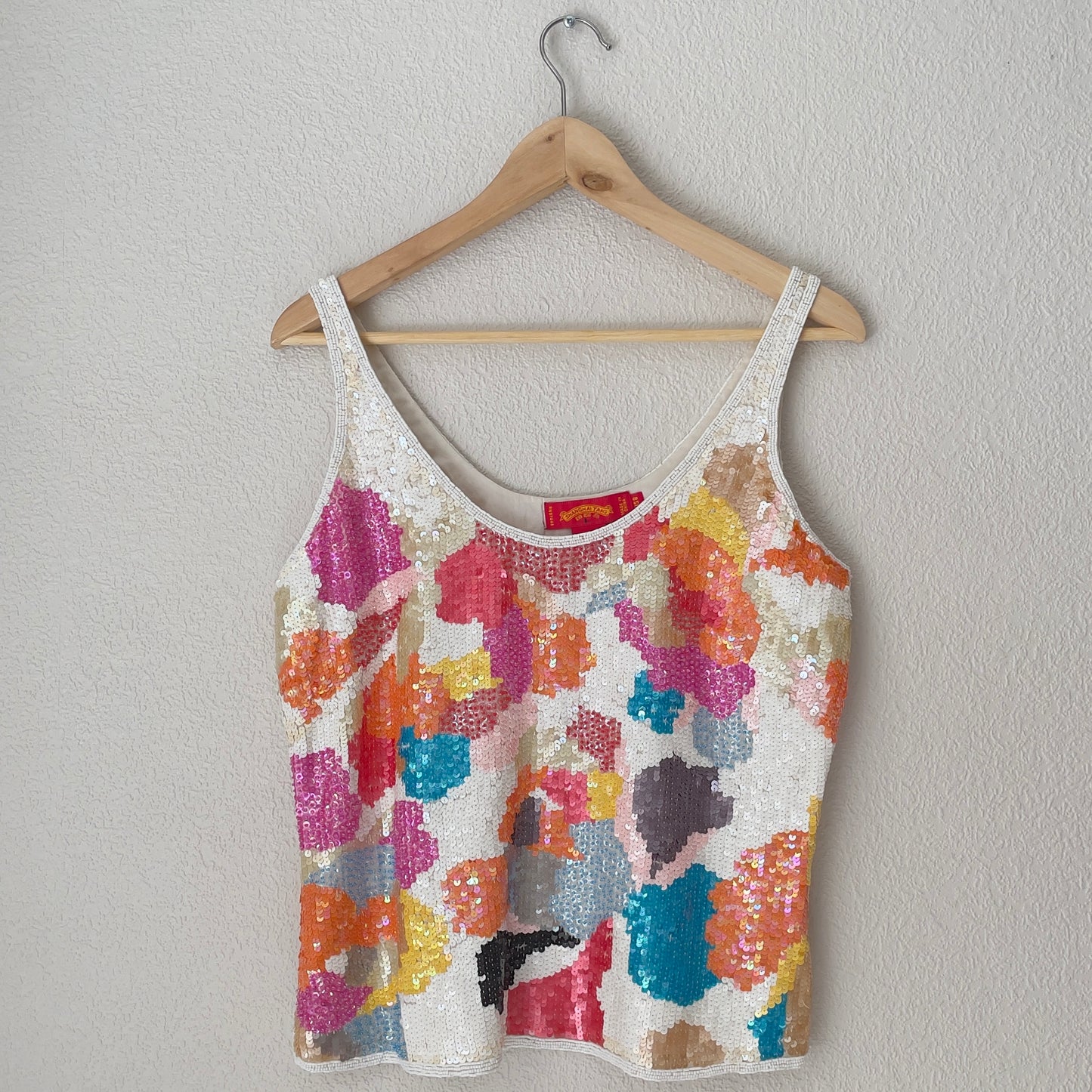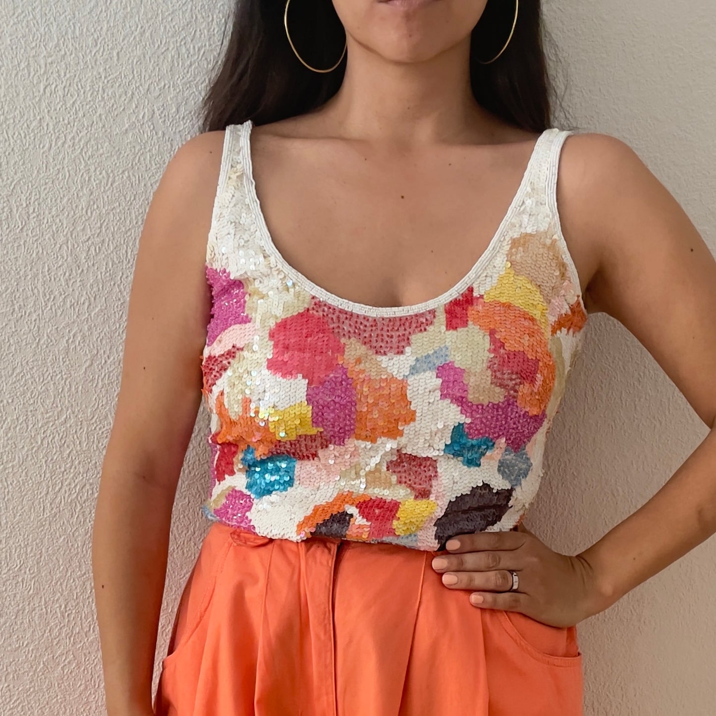 Colorful silk top full of sequins and beads. Incredible beautiful and feminine.