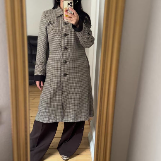 Beautiful vintage coat featuring a classic houndstooth pattern and a feminine cut.